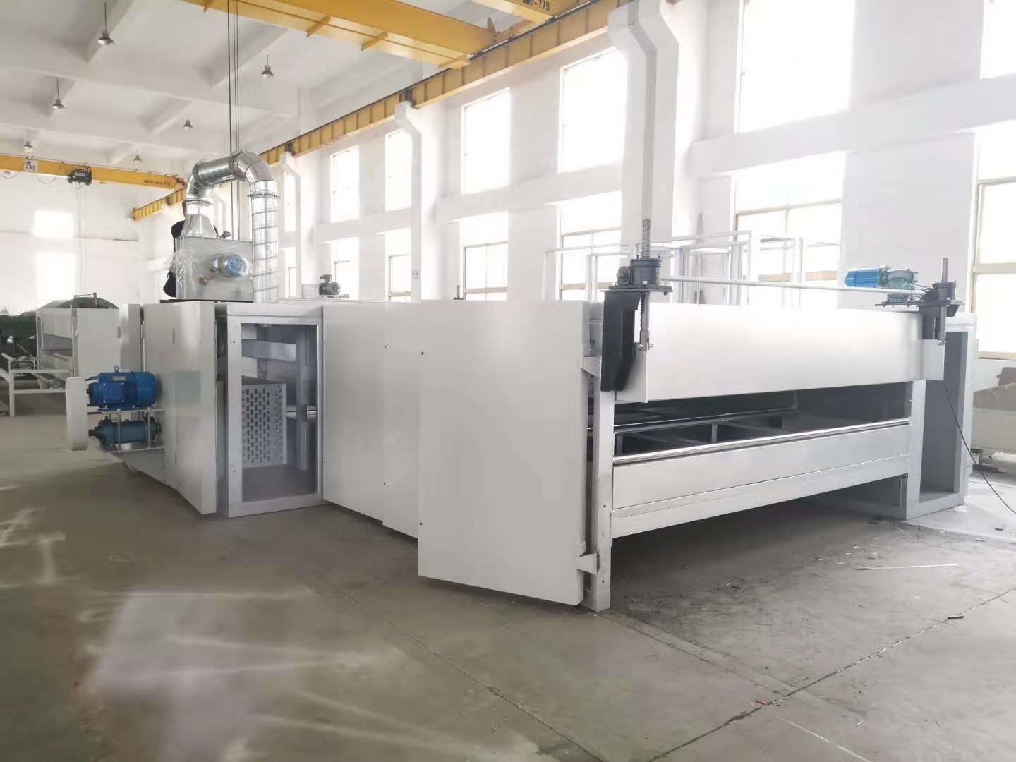 1)機器功能:對鋪好的棉進行高溫烘烤處理,讓棉進行粘合固定。