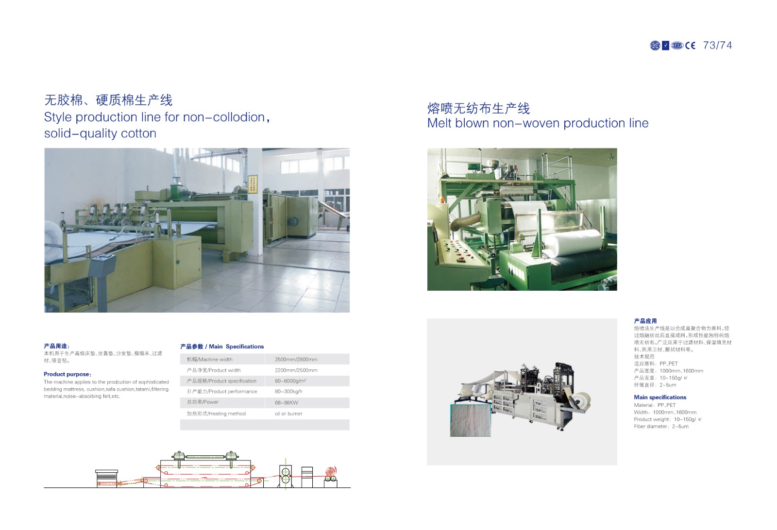 3、生產(chǎn)品種:無膠棉硬質(zhì)棉等各種熱熔絮片類無紡布
