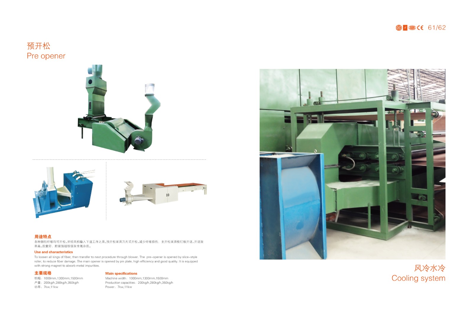6、生產(chǎn)能力:梳理機產(chǎn)量 150KG--350KG/H(根據(jù)化纖原料和